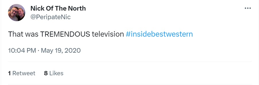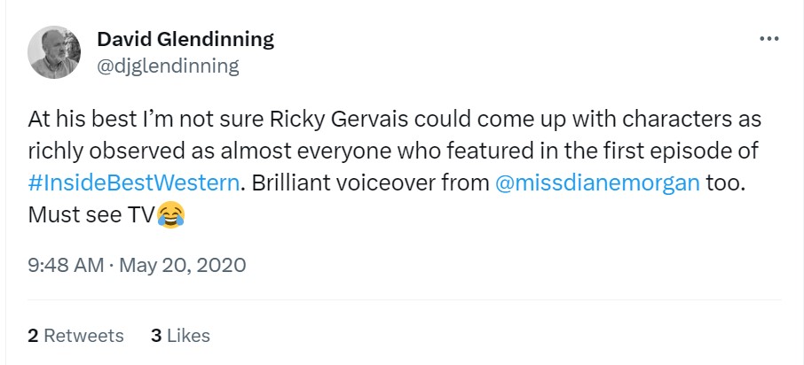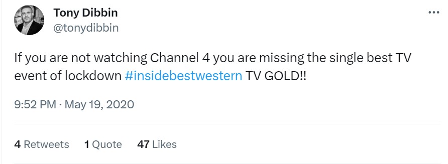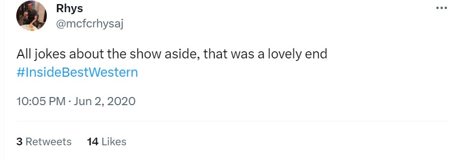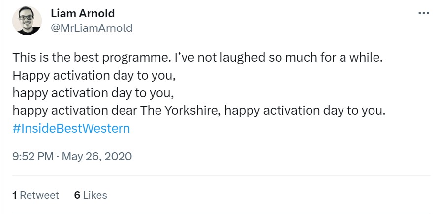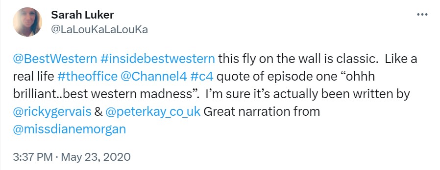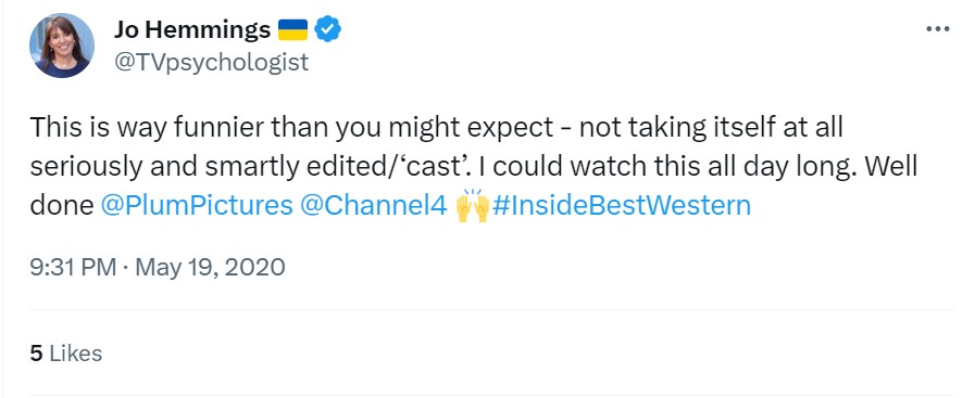 The TV critics didn’t exactly love it (an unfortunate byproduct of transmisison during the first COVID lockdown when, sadly, all hotels had to shut their doors!), but the viewers on Twitter at least got it…